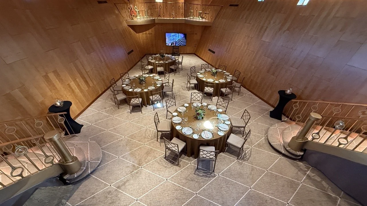 The Ballroom – A dramatic, double-height venue with two grand staircases and a mezzanine bar. Perfect for Champagne receptions or private events, it accommodates up to 60 guests with space for live entertainment.