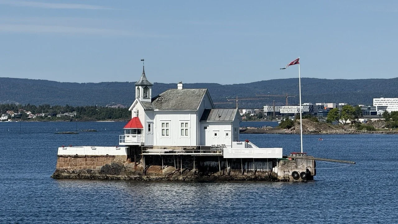 The charming Dyna Lighthouse — still active today — stands proudly on a tiny islet in the Oslofjord.