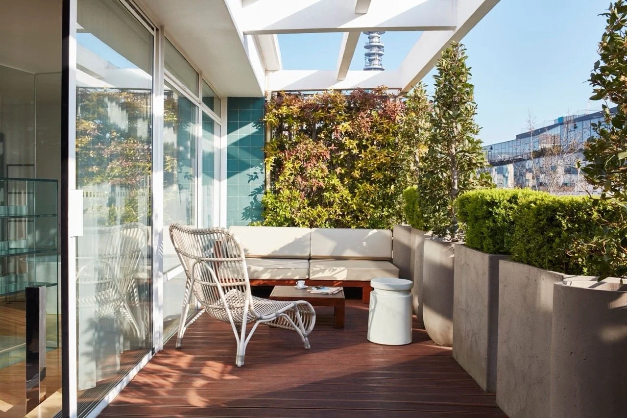 Opened in 2017, The Mandrake is a five-star boutique hotel set within a converted Victorian building in Fitzrovia. The property is known for its bold, artistic interiors, eclectic design, and lush central courtyard filled with hanging jasmine and passionflower plants. Its 34 rooms, three luxury suites and one penthouse have been designed with a dramatic flair, blending rich textures with curated artwork.